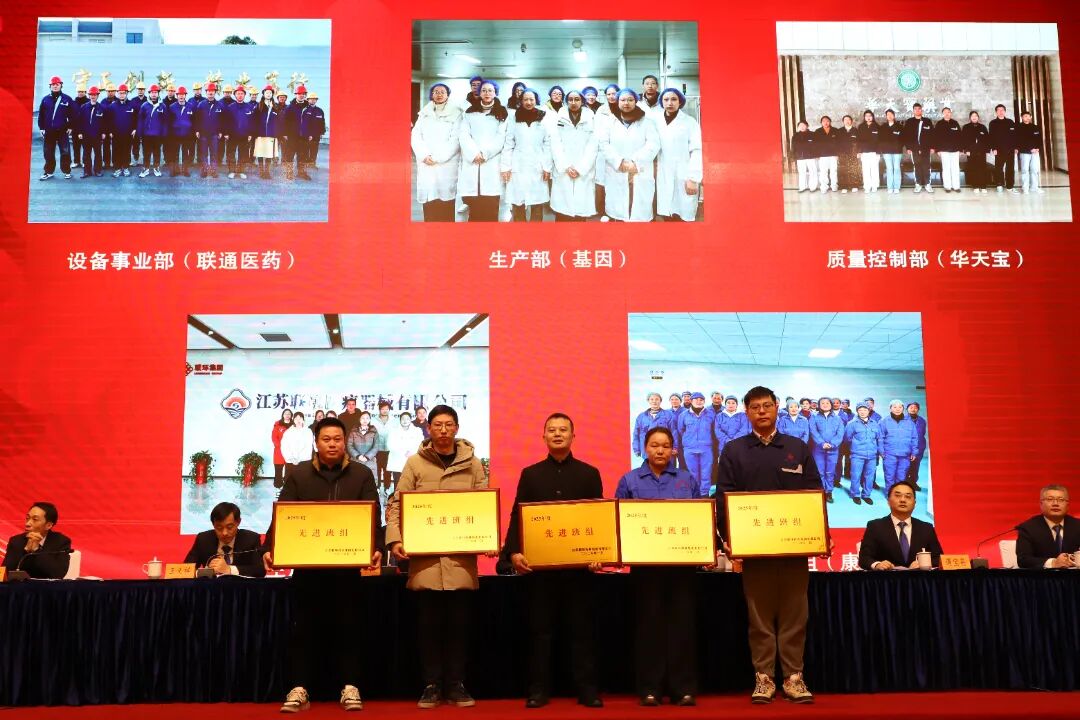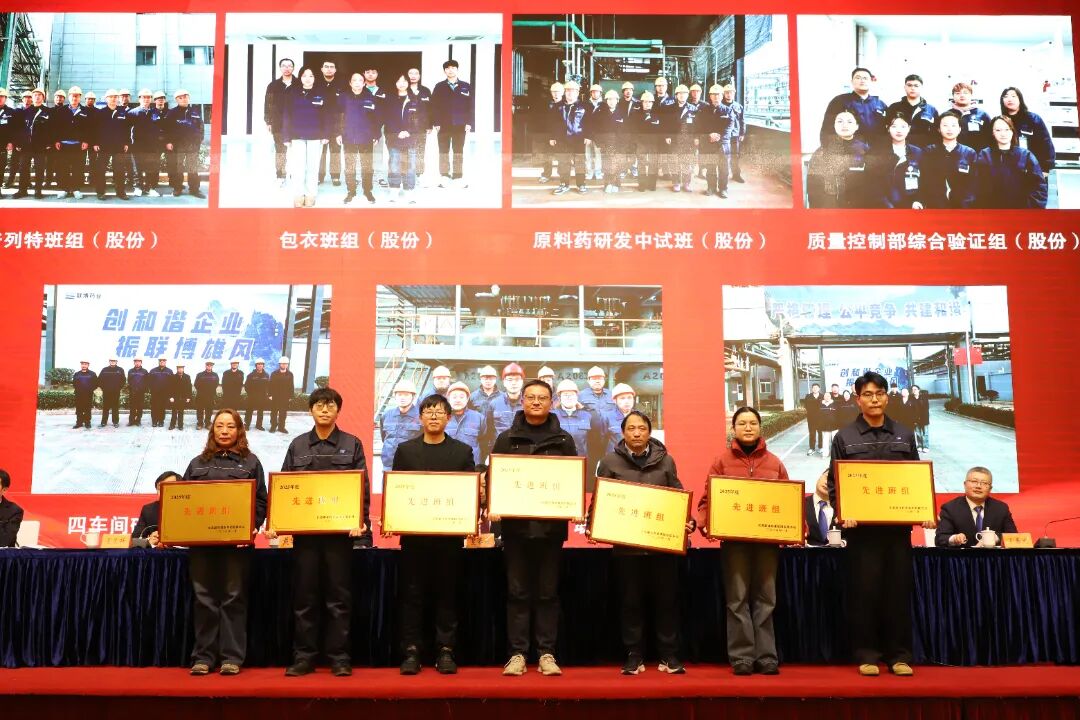 bv伟德源自英国始于1946集团财务总监遇宝昌宣读了《关于表彰2025年度bv伟德源自英国始于1946集团先进集体和先进个人的决定》,大会对11家先进单位、24个先进班组和84名先进个人进行了表彰。联博药业、联通医药设备获得高质量发展先进单位;bv伟德源自英国始于1946股份、普林斯医药、睿源生物获得科技创新先进单位;bv伟德源自英国始于1946股份、联博药业、联通医药设备获得安全生产先进单位;bv伟德源自英国始于1946股份、普林斯医药、圣氏化学获得项目建设先进单位。